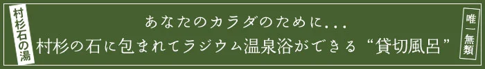 村杉温泉のラジウム温泉は、古くから湯治場として愛されてきた「吸う温泉」。貸切風呂で効率的にラドンを吸入できます。
