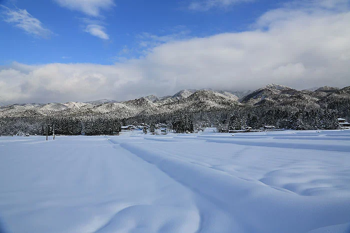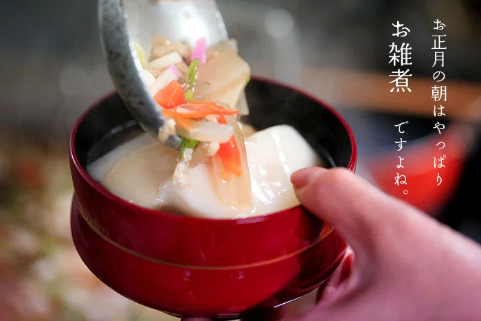 新潟の田舎雑煮は具だくさんでうれしい五頭山麓には知られているだけでも7つの名水が湧いています。 そして、ラジウム温泉の名湯も数多く湧出しているほどの、水が豊かな里山です。森の中を流れる水は、一年中麓の里山を潤してくれます。新潟の冬は、野山が雪に覆われます。この雪のおかげで、田畑は殺菌、殺虫効果があると言われています。身が引き締まるような凛とした雪景色の中でお正月を迎える事こそが、昔も今も新潟らしいお正月なのです。