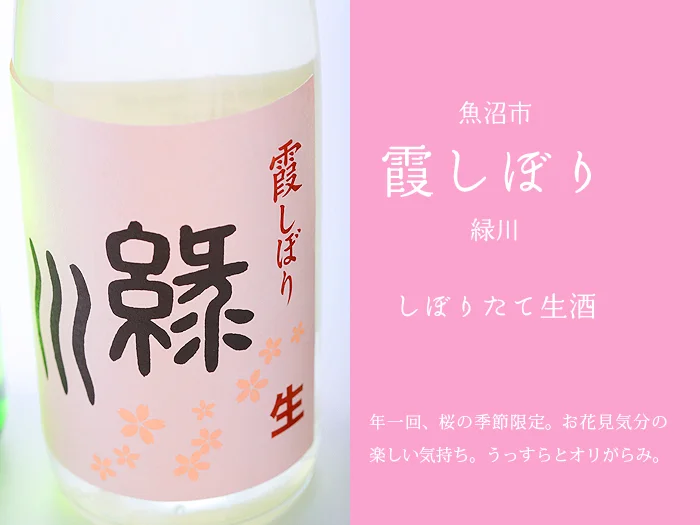 ほんのりとにごりを含んだ生原酒。緑川らしい後味のすっきりした新酒です。