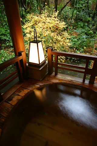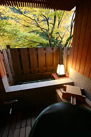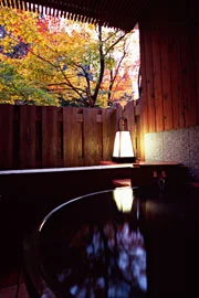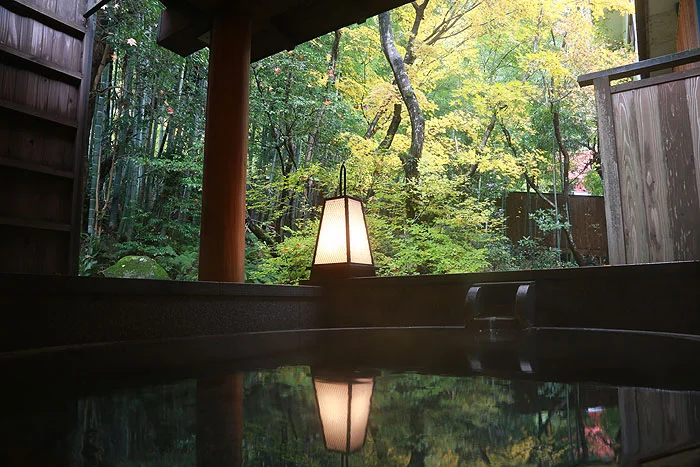 露天風呂からもみじが見える温泉旅館