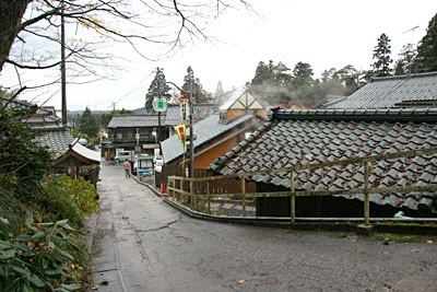 江戸時代からすでに、たくさんの湯治客がこの坂道を登り長期間の湯治を楽しんでいました。今も変わらず多くの人が行き交う温泉街の中心です。