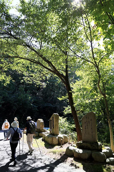 舗装された林道の周りには、200基以上の文学碑が並び、歩きながら、立ち止まりながら、知性も刺激してくれます。