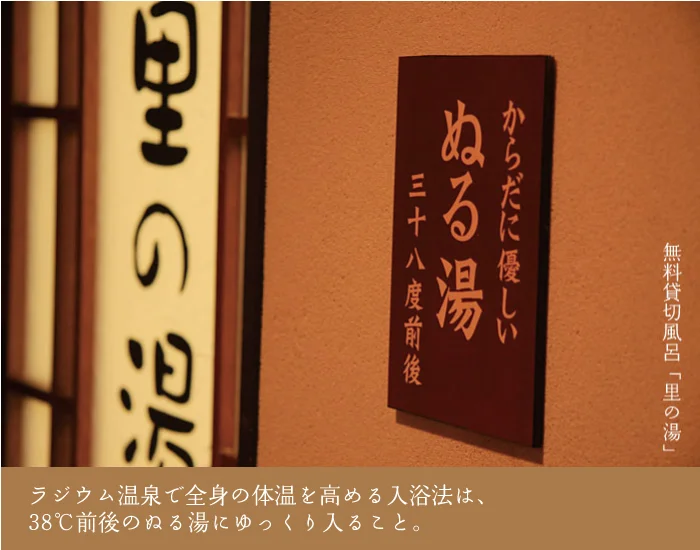 ゆっくり20分間のラジウム温泉浴が効く“ぬる湯”貸切風呂 「里の湯」