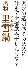 角屋旅館の庭から湧き出す天然水「銀蔵清水」を使った鍋料理。昆布だしの利いたさらっとしたスープに、新鮮な白身魚のすり身を丸めたフワフワの真丈がいい味を出します。たっぷりの水菜ときのこがヘルシーでシンプルな鍋料理。汁まで全部飲み干したくなるくらいの、素朴でおいしいお鍋です。締めのご飯を入れておじやを楽しむのもおすすめです。