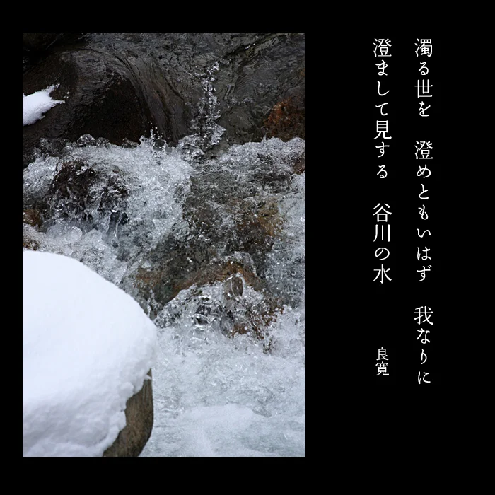 【 説明 】濁り行く世の流れをよそ目に、谷を流れる水はおのずから清らかに住んで流れていく。世の中の正しい道が、年々衰えてゆくありさまを憂うる内意が伏せられている。