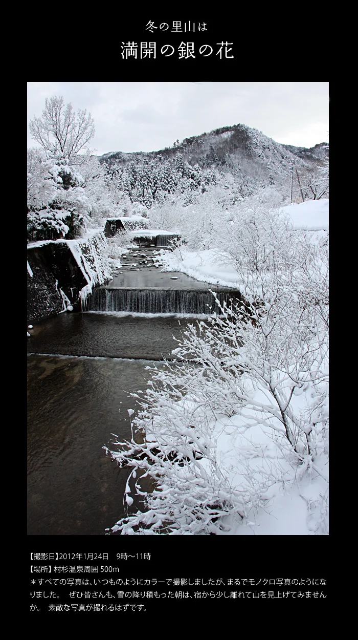 高台からの村杉温泉の雪景色