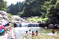 大荒川の渓流沿いに広がる赤松や雑木の森の中に、キャンプサイトがあります。50ha余りの森。本格キャンプはもちろん、お昼を食べるだけのデイキャンプやバーベキューにもってこい。遊歩道が整備され、キャンプ場、炊事場、トイレ、バンガロー、テニスコートなどがあります。水辺が整備され、水遊びができるようキャンプ場として知られています。