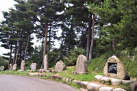 出湯口から村杉口までの4kmに、250余りの歌碑や句碑が並ぶ林道です。旧笹神村は昔から佐藤念腹や石塚友二といった文人、俳人を多く排出。そこで県内外の俳人、歌人に発表の場を持ってもらおうと、松尾芭蕉の「奥の細道」をヒントに作られました。冬期は降雪のため閉鎖します。