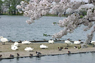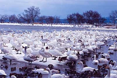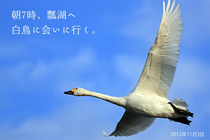 白鳥が舞い降りる、冬の瓢湖へ。