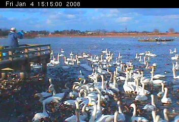 毎日、一日3回行われる瓢湖の餌付けの様子を、ライブカメラの素晴らしい画像でご覧ください。