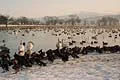 朝もやの瓢湖1月23日 7:00