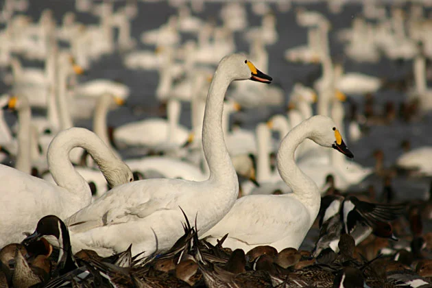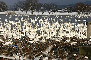 ▲あまりの多さに圧倒されてしまいますが、白鳥のそれぞれの動きを見ていると面白いものです。