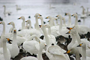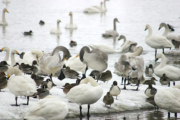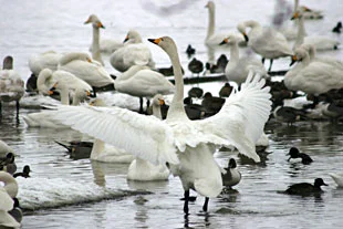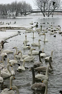 白鳥が舞い降りる、冬の瓢湖へ。