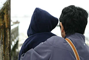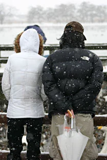 ▲雪の中心配そうに見る人たち