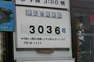 ▲なんと、ハクチョウ監視棟の窓に張り紙が・・・