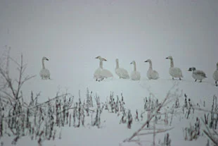 今日は、吹雪のなか、午後3時の餌付けの時間に合わせて、「トラバサミのハクチョウ」を探しに、瓢湖へ出掛けました。