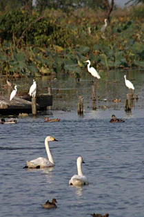 ▲今年、瓢湖に初飛来した白鳥3羽のうちの一羽 (と思います)