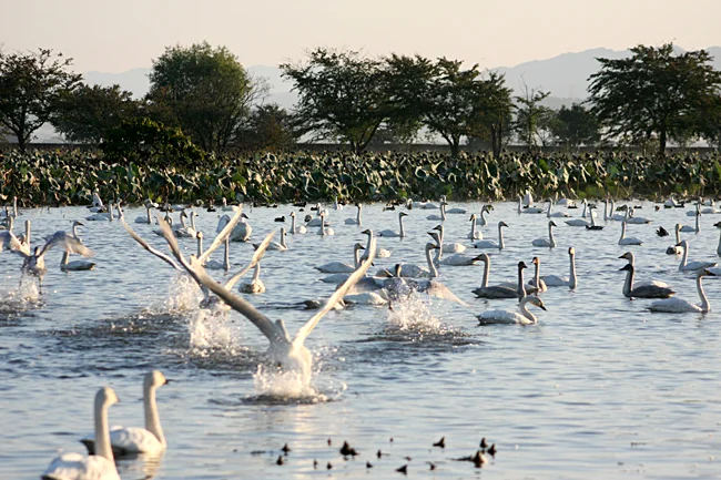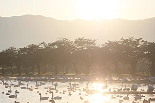 白鳥が舞い降りる、冬の瓢湖へ。