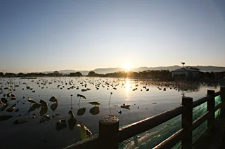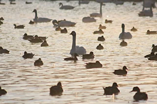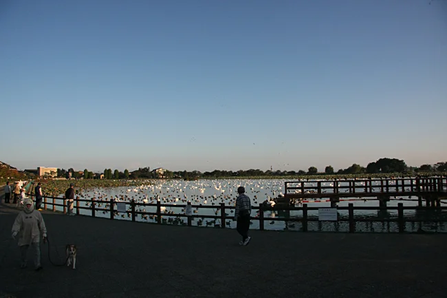 ▲まだ寒い時期ではないので、早朝から白鳥見学に訪れる人が多いようです。