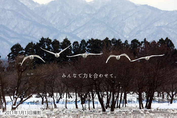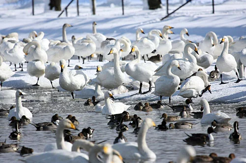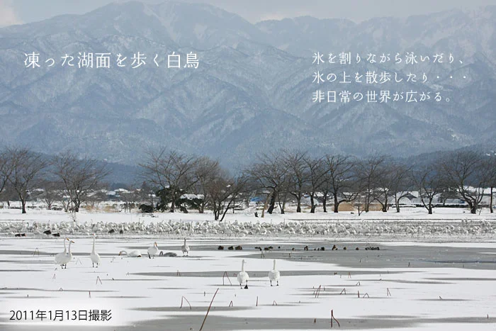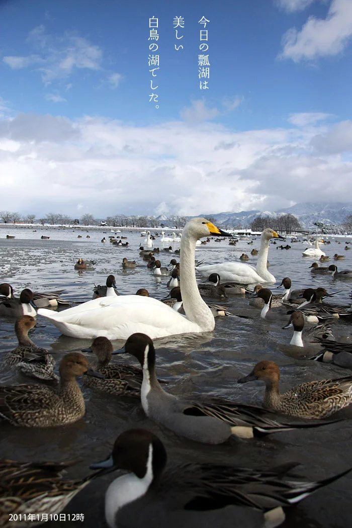 白鳥が舞い降りる、冬の瓢湖へ。