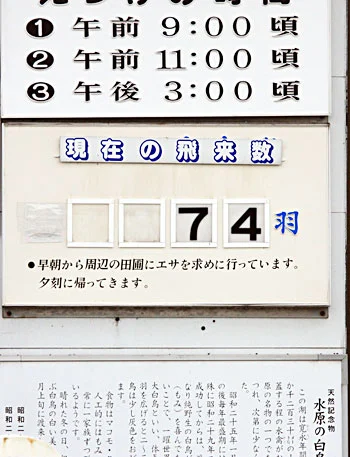 初飛来は、10月4日。翌朝の飛来数は74羽でした。