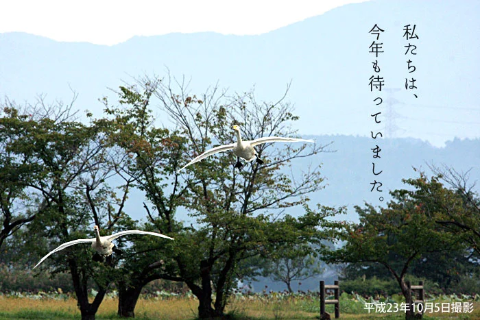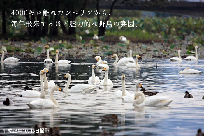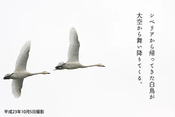 毎年10月にシベリアから5000羽以上の白鳥が飛来します。今年の初飛来も、昨年とほぼ同時期でした。