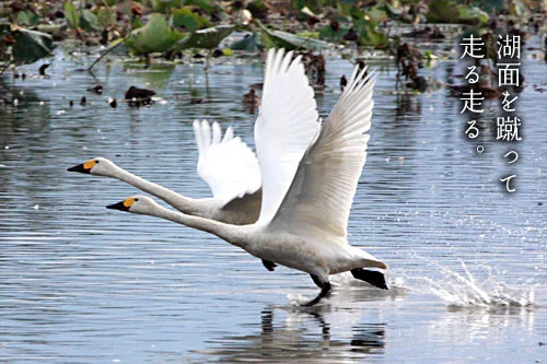 白鳥が舞い降りる、冬の瓢湖へ。