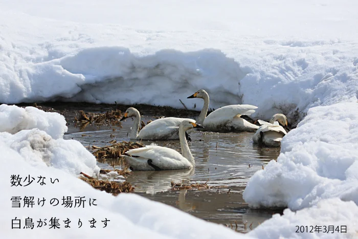 白鳥のような渡り鳥は、日本とシベリアの季節の変化の中で生きるすべを身に付けてきました。3月の雪解けが遅れると、皮下脂肪の蓄積が遅れ、シベリアへの旅立ちが遅れます。