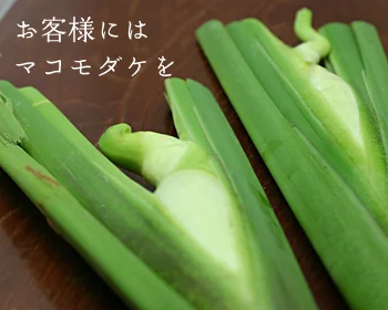 一番の好物は、マコモのの茎や根。 他にも稲の落穂や水中の藻などを、水と一緒にすくいながら食べます。今日のえさ場は、角屋旅館でも使用しているマコモダケの水田ですから、これは大好物のマコモダケの茎です。