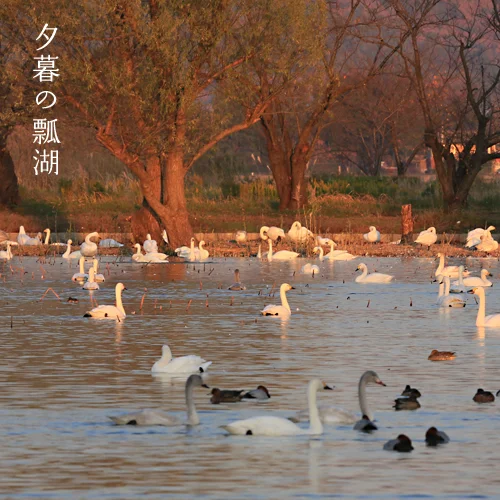 白鳥が舞い降りる、冬の瓢湖へ。