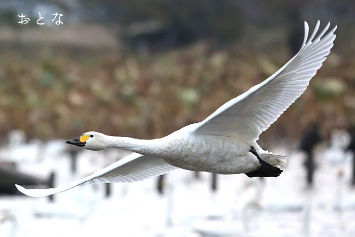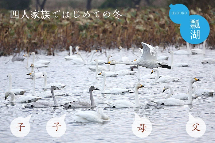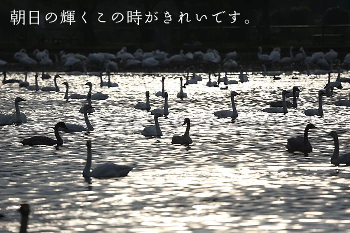 白鳥が舞い降りる、冬の瓢湖へ。