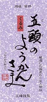 全国温泉 決死の生き残り大作戦 新銘菓誕生大作戦!◆新銘菓誕生大作戦 ◆山田強氏 (やまだ・つよむ)神奈川県・億万両本舗 和作 店主厳しい修行で培われた確かな技術と伝統を伝える気品高く繊細な感性、常に新作を生み出して行く豊な創造力とチャレンジ精神。平成12年4月に行われたTVチャンピオン400回記念大会「和菓子職人チャンピオン大会」にて優勝。株式会社億万両本舗横浜市旭区中白根1-9-13 TEL045-953-8139五頭のようかんさま命名:山田強題字:原田大二郎極上の小豆と寒天に米どころならではの白い求肥、細かい胡桃の歯ざわりが人気。1個…………1,260円(税込)「TVチャンピオン」の和菓子職人グランドチャンピオン、横浜・億万両本舗和作の山田強氏の指導を受け、五頭温泉郷の銘菓となるべく生まれました。極上の小豆と寒天を、五頭の名水を使い、昔ながらの製法で練り上げました。貴重な国産胡桃を細かい粉末にしてたっぷりと使用。中には、米どころ越後笹神ならではの、もち米で作った求肥を入れました。甘みをおさえた小豆の味と胡桃の香りをご賞味くださいませ。平成十四年元旦に全国生中継で、新しく発売させていただきました。新潟県といえば良寛さま、新潟県を代表するような銘菓になるように、良寛様にもちなんで、「ようかんさま」と名づけていただきました。命名は、山田強氏、題字は、原田大二郎さんです。【お求めは】製造元の玉峰商事、五頭温泉郷の各旅館にて絶賛販売中。地方発送も承りますので、お電話にてお問い合わせください。玉峰商事 TEL0250-62-0345極上の糸寒天厳選した上質な小豆新潟のもち米香りのいい国産のくるみ清野氏五頭温泉郷・玉峰商事(G・Hエリカーノ) 社長木造3階建ての宿・清廣館社長五頭温泉郷名物の温泉饅頭「玉峰まんじゅう」「ほんのき餅」など数多くのお菓子を生み出してきた。玉峰商事有限会社 新潟県阿賀野市出湯1165TEL.0250-62-0345お 客 様 の 声■極上のお菓子作りに使う材料だけを、たっぷり使ったおかげで、気持ちのいい甘みがうれしいです。ほのかな胡桃の味と求肥の柔らかさ、ようかんの歯ごたえが程よいバランスになっていて、おいしいです。(60代女性・元お菓子教室講師)■私もお菓子店を経営していますが、この味は驚きました。おいしいです。(40代・菓子店経営)■先日お土産に買って帰り、友達に配りましたが、誰もが「おいしい」といってくれました。本当に好評です。今日もまた5本買って帰ります。(40代男性)■ようかんに求肥が入っているなんて、驚きました。その舌触りがなんとも言えず美味しいです。(50代女性)■「ようかんさま」という名前がいいですね。かわいい。(30代女性)